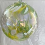 Kugel zum hängen mit Innenleben bunte Glaskugel grün gelb weiß klar irisierend Fensterdekoration mundgeblasenes Kristallglas Durchmesser ca. 15 cm