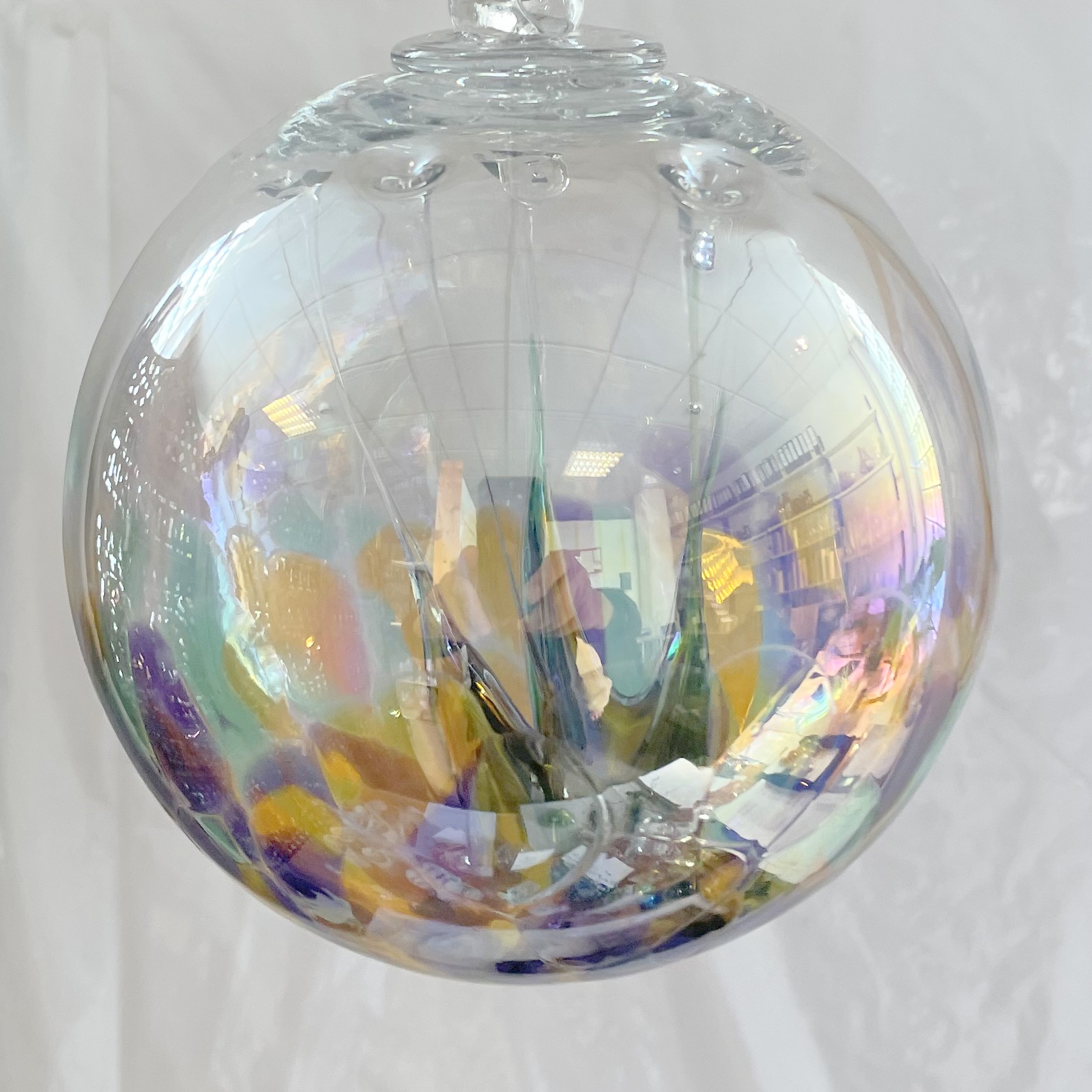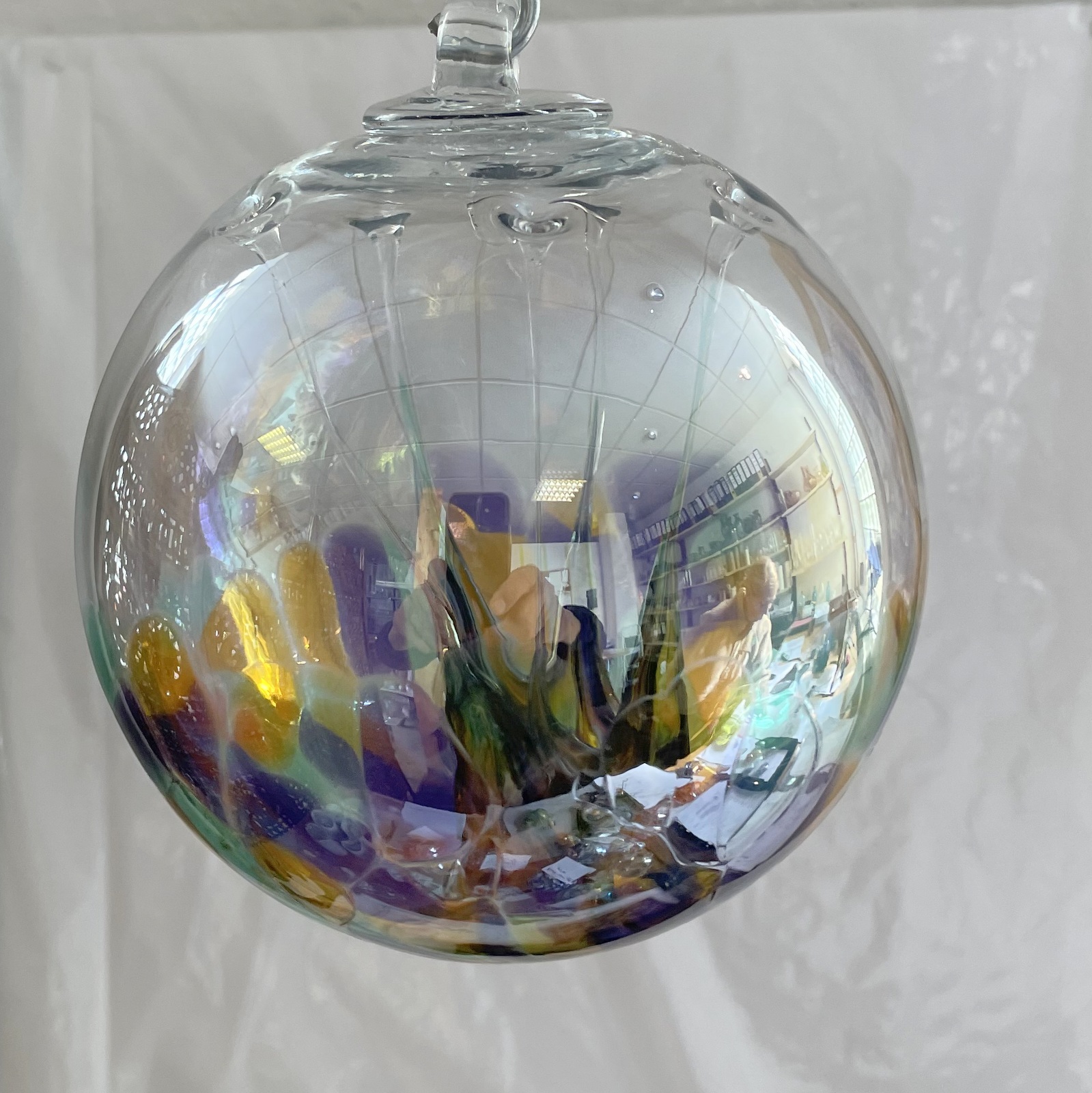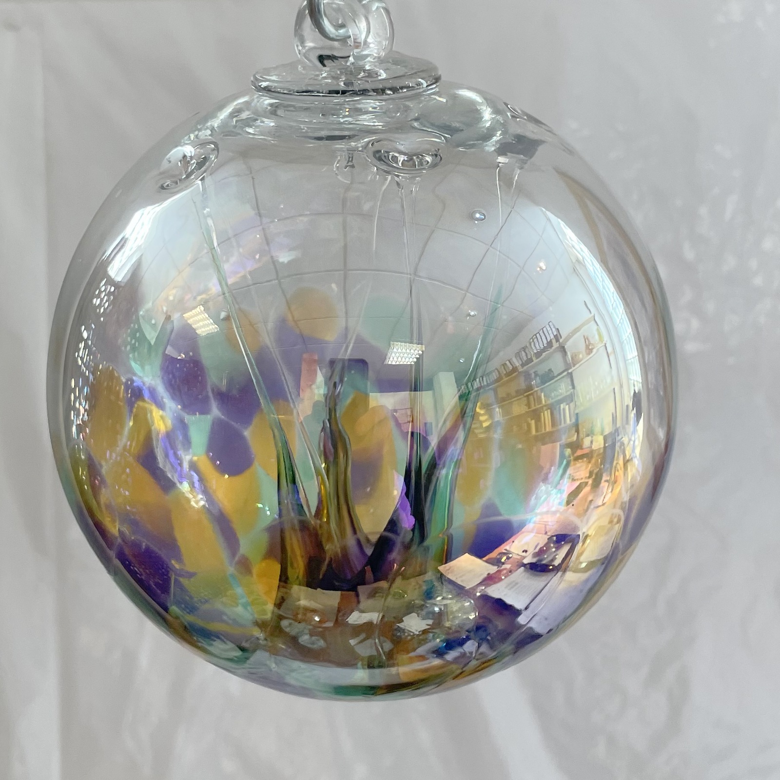 Kugel zum hängen mit Innenleben bunte Glaskugel Ornament Kugel zum hängen mit Innenleben bunte Glaskugel Ornament klar lila amber Fensterdekoration mundgeblasenes Kristallglas Durchmesser ca. 15 cm mundgeblasenes Kristallglas Durchmesser ca. 15 cm