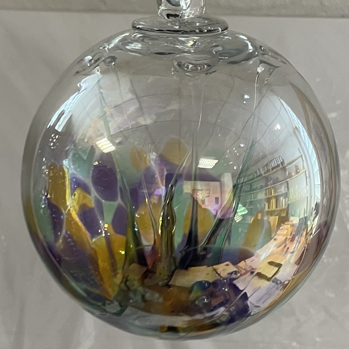 Kugel zum hängen mit Innenleben bunte Glaskugel lila amber klar Fensterdekoration mundgeblasenes Kristallglas Durchmesser ca. 15 cm