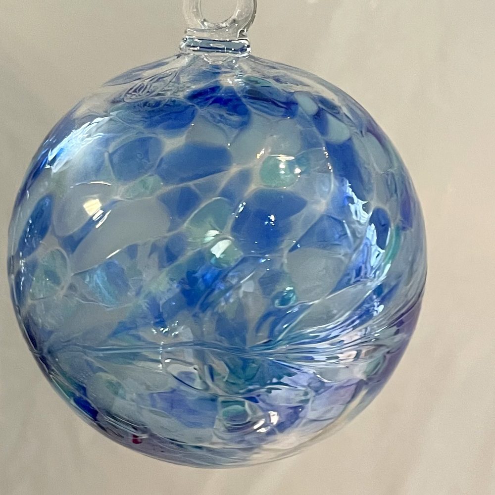 Kugel zum hängen mit Innenleben bunte Glaskugel Ornament blau klar mit Fensterdekoration mundgeblasenes Kristallglas Durchmesser ca. 15 cm