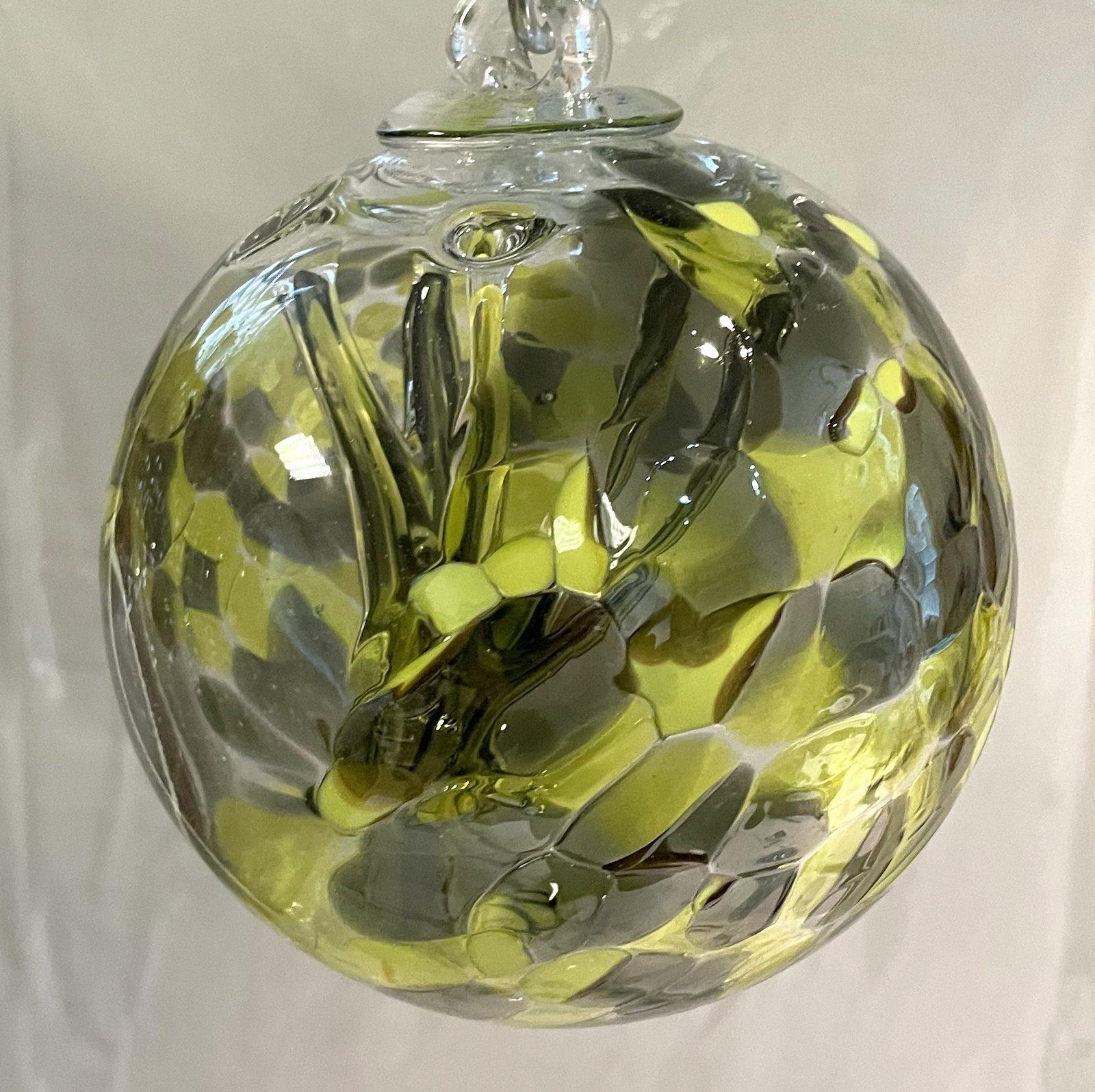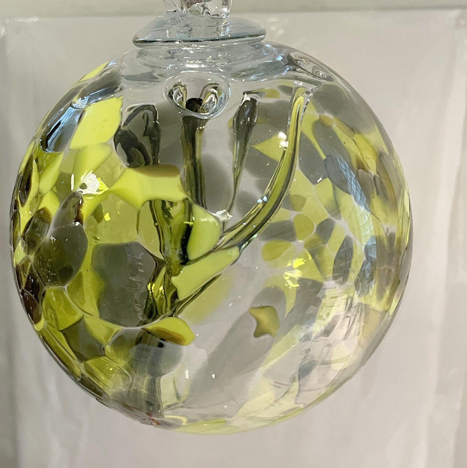 Kugel zum hängen mit Innenleben grün gelb weiss klar Glaskugel mundgeblasenes Kristallglas Durchmesser ca. 15 cm Oberstdorfer Glashütte