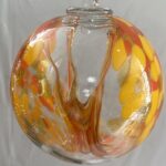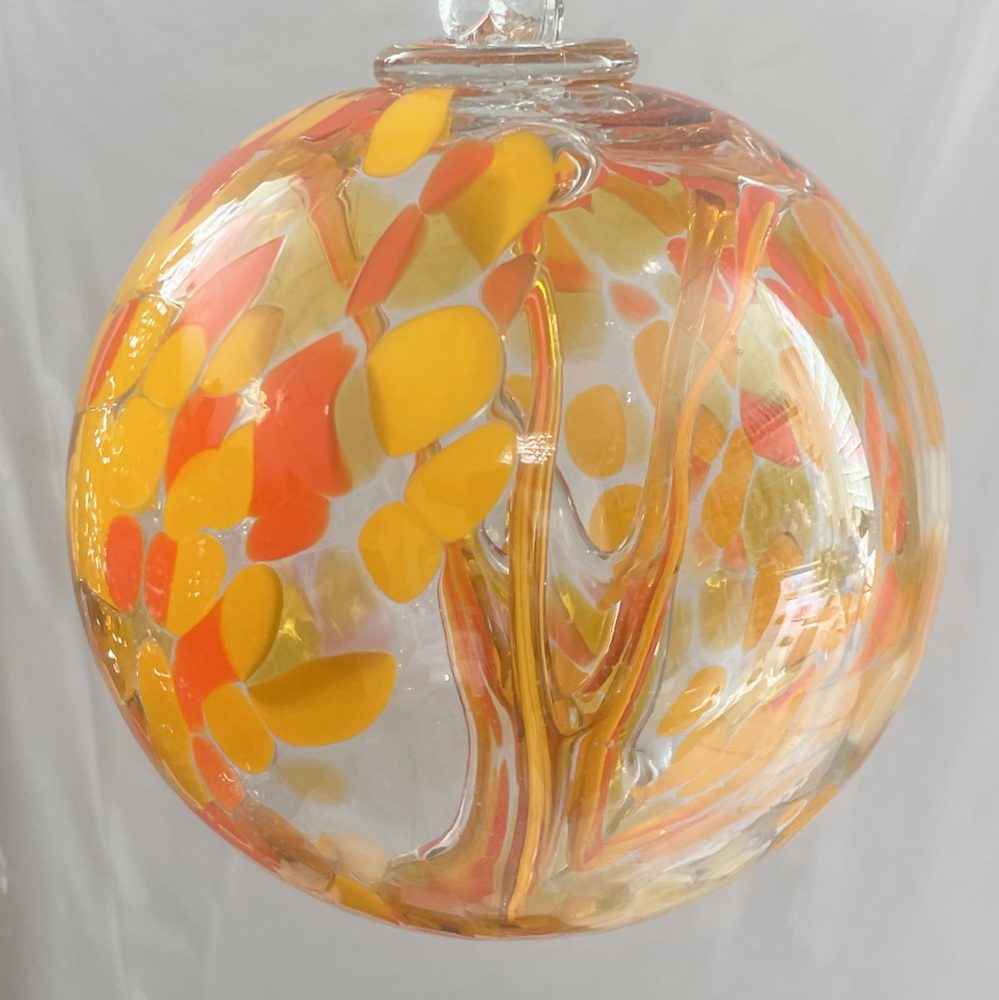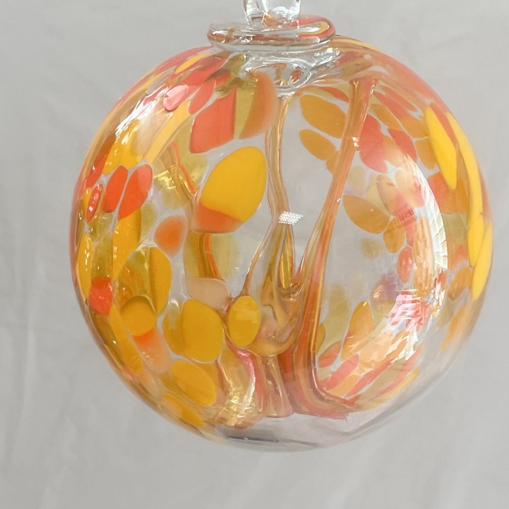 Kugel zum hängen mit Innenleben bunte Glaskugel gelb orange klar Fensterdekoration mundgeblasenes Kristallglas Durchmesser ca. 15 cm