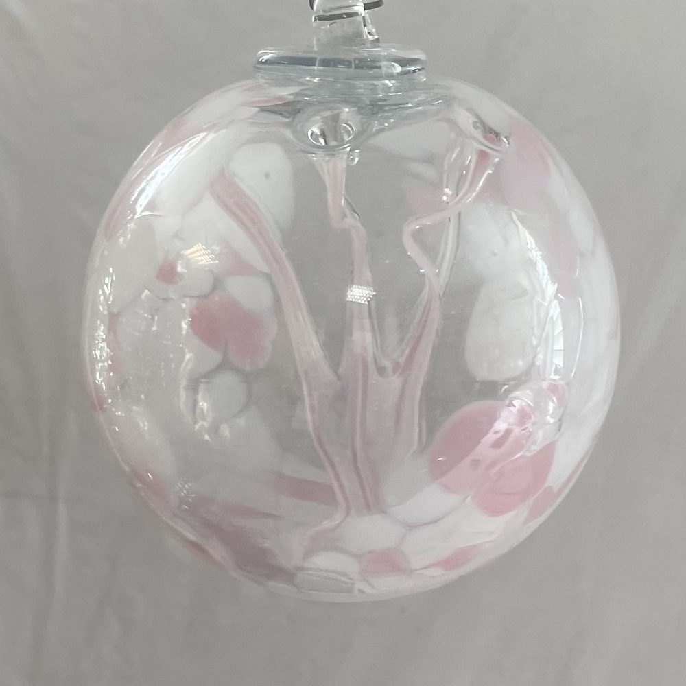 Kugel zum hängen mit Innenleben bunte Glaskugel hell rosa weiß klar Fensterdekoration mundgeblasenes Kristallglas Durchmesser ca. 15 cm