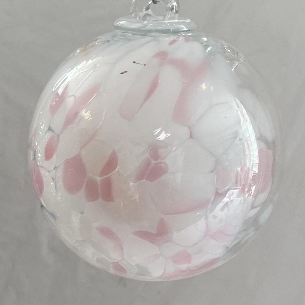 Kugel zum hängen mit Innenleben bunte Glaskugel Ornament hell rosa weiß klar Fensterdekoration mundgeblasenes Kristallglas Durchmesser ca. 15 cm