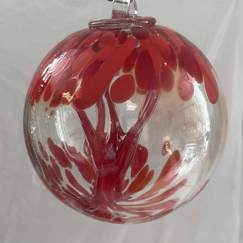Kugel zum hängen mit Innenleben bunte Glaskugel Ornament rot klar Fensterdekoration mundgeblasenes Kristallglas Durchmesser ca. 15 cm