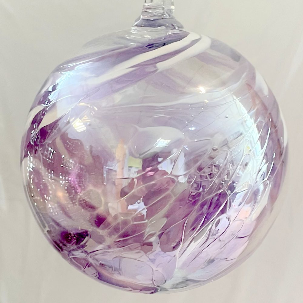 Kugel zum hängen bunte Glaskugel Ornament violett weiß klar Fensterdekoration mundgeblasenes Kristallglas Durchmesser ca. 15 cm