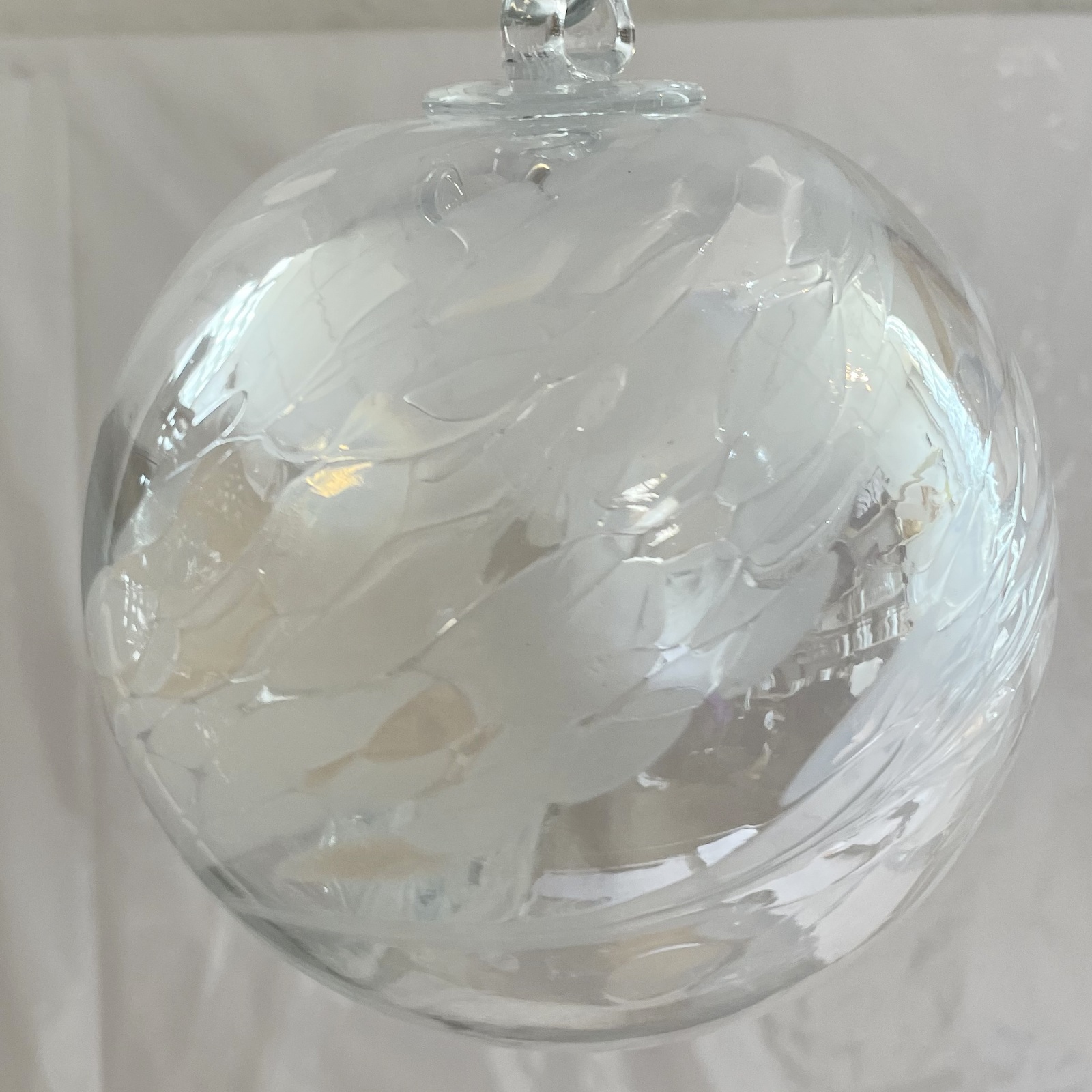 Kugel zum hängen mit Innenleben bunte Glaskugelweiss klar Fensterdekoration mundgeblasenes Kristallglas Durchmesser ca. 15 cm
