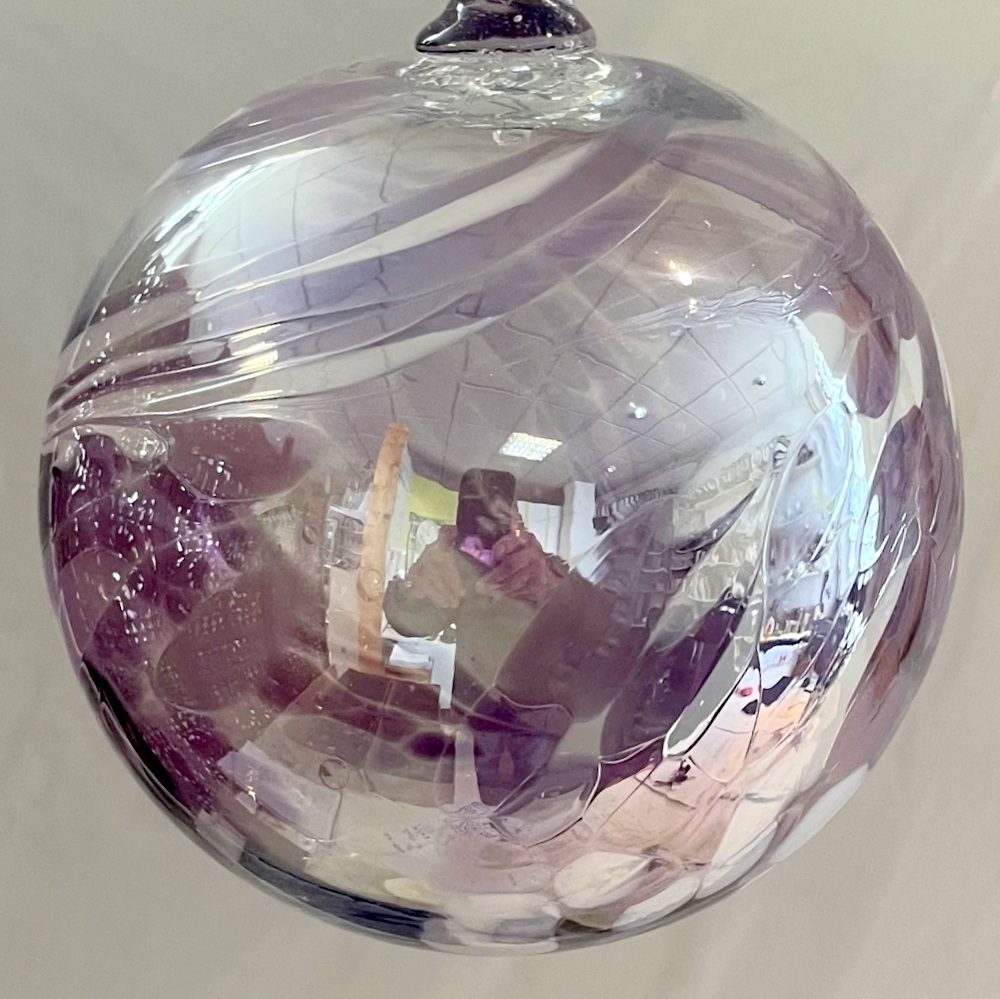 Kugel zum hängen mit Innenleben bunte Glaskugel violett weiß klar Fensterdekoration mundgeblasenes Kristallglas Durchmesser ca. 15 cm