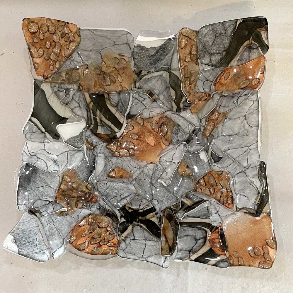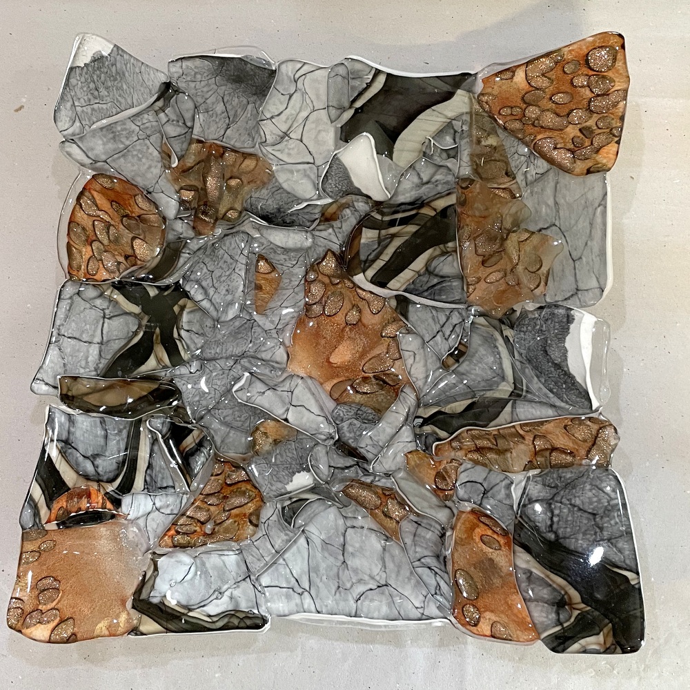 Moderne dekorative Glasschale Größe 30 cm x 30 cm Höhe 5 cm cm schwarz weiß Kupfer fusing Handarbeit