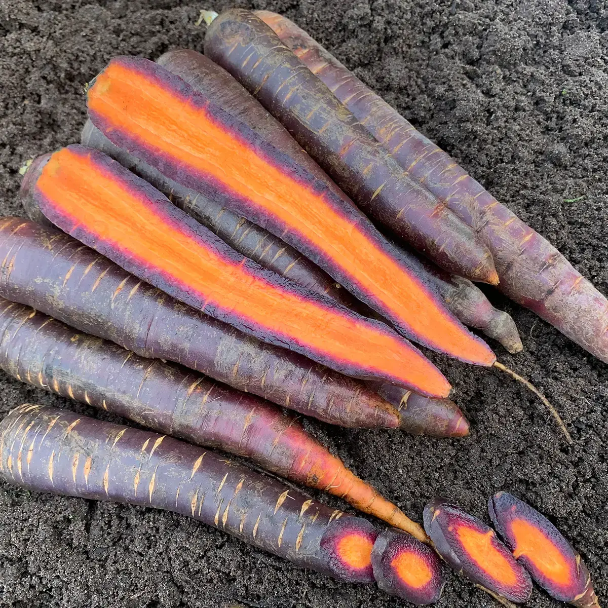 Möhren der Sorte ‚Lila Lu SG‘ sind für ihre auffällige lila Farbe und ihren süßen Geschmack bekannt. Diese Sorte ist sowohl ansprechend als auch bekömmlich.