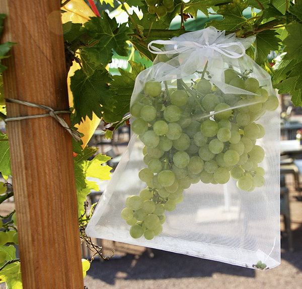 Sehr einfaches Handling durch zwei eingenähte Zugbänder für den schnellen und sicheren Verschluß. Gaze Säckchen vor der Fruchtreife über die Fruchtstände / Früchte stülpen, an den beiden Zugbändern ziehen und verschließen – fertig.