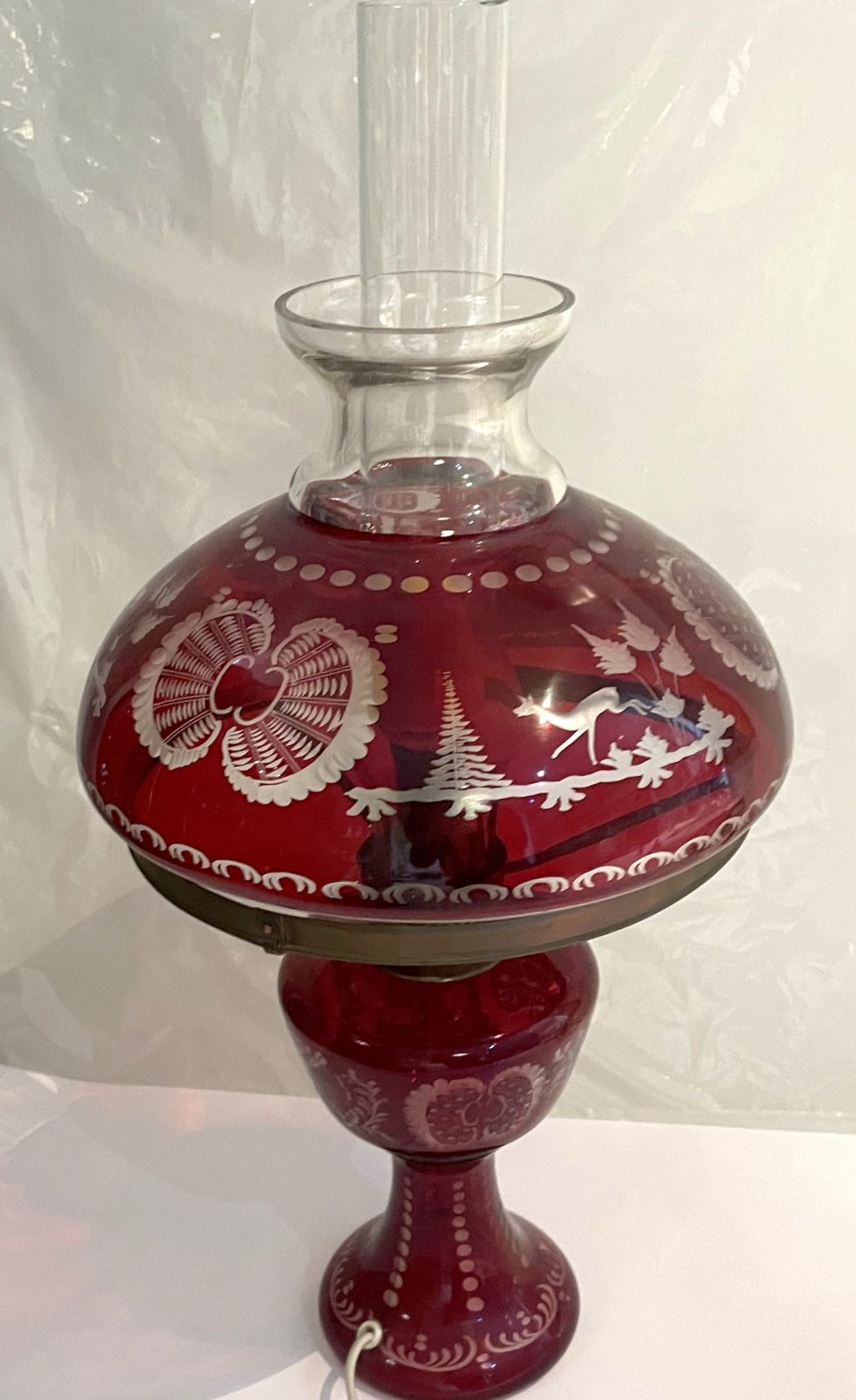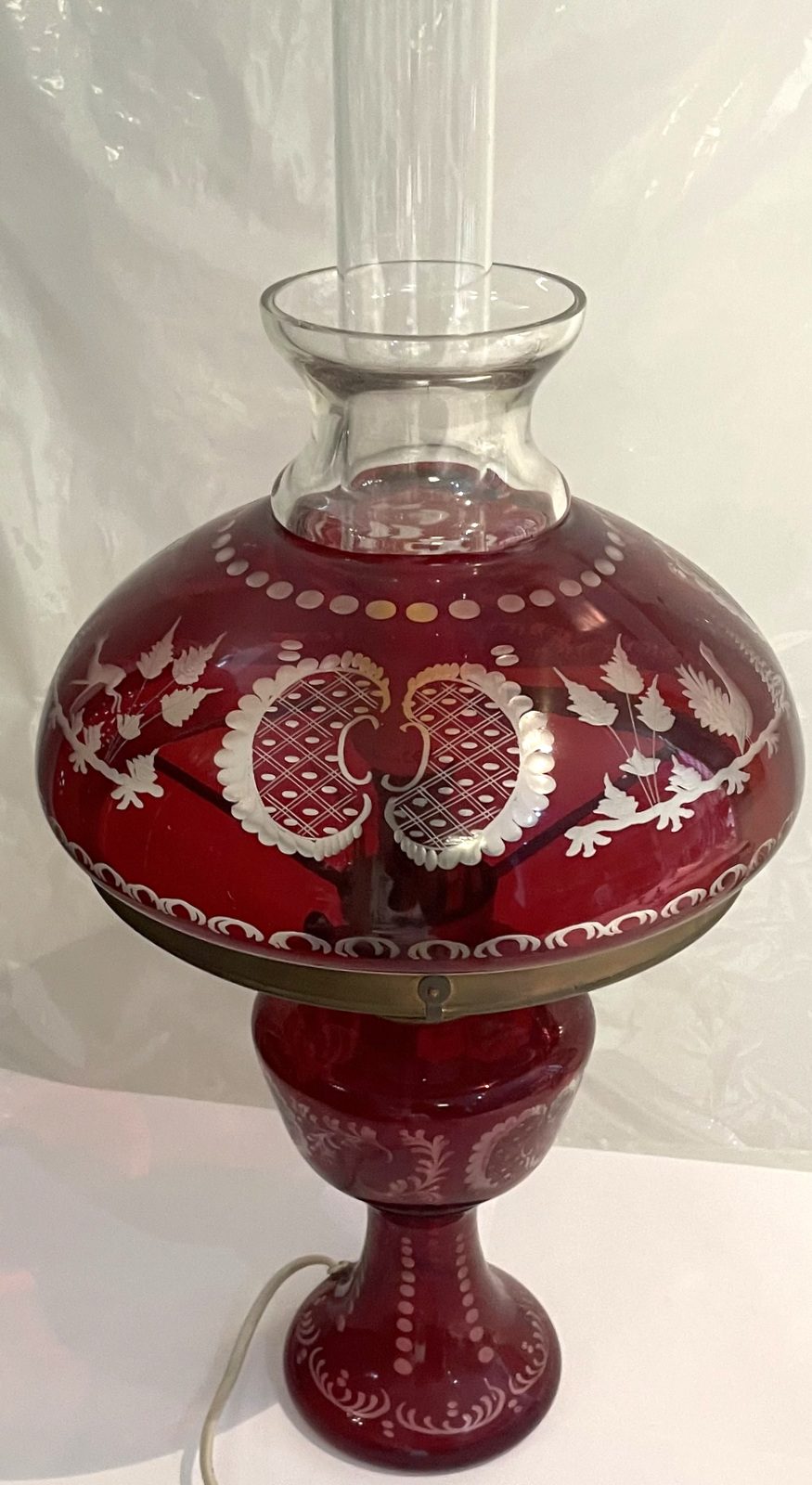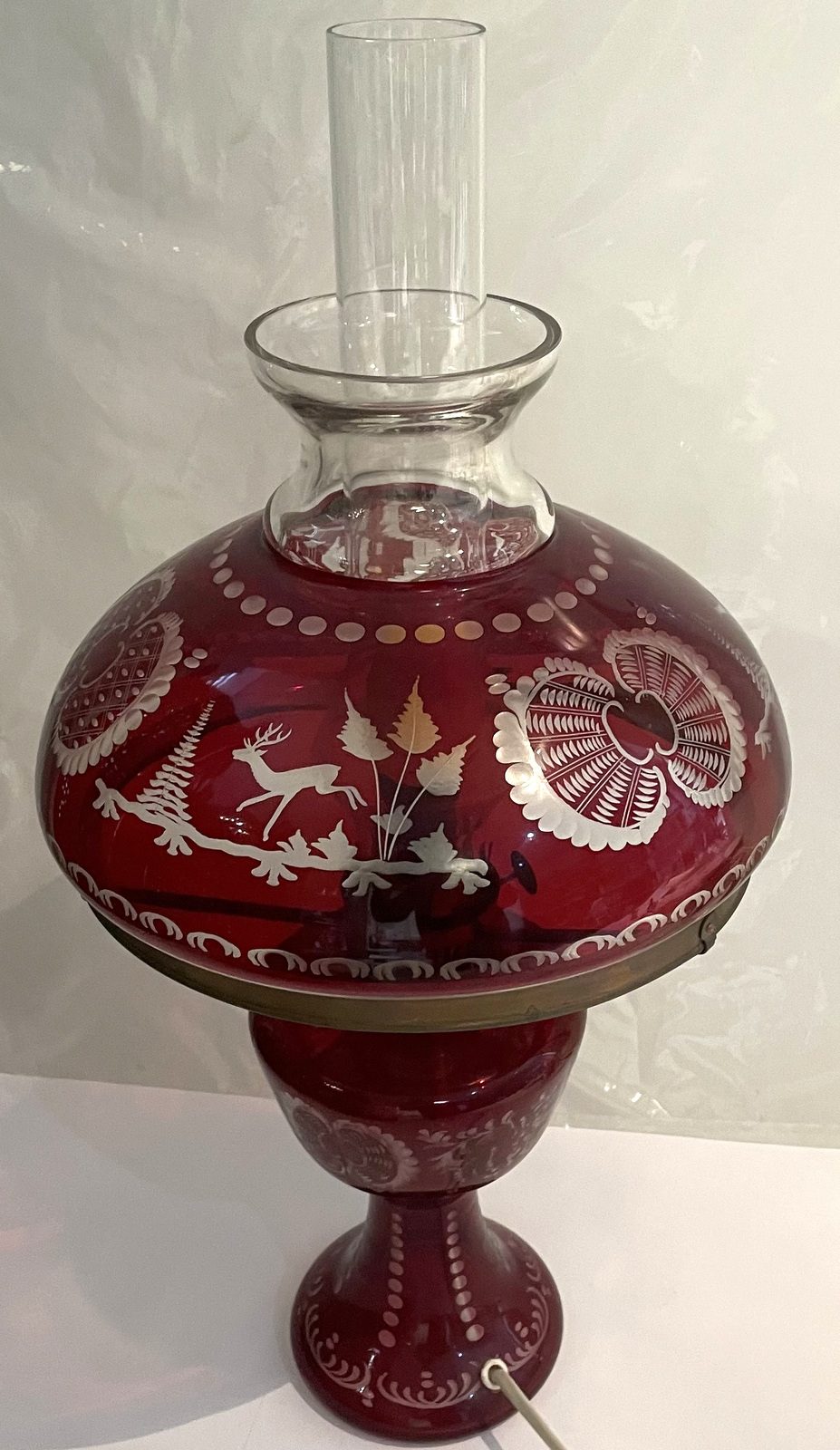 Egermann Glas rubinrot böhmisches Glas Dekoration Wohnaccessories Tischlampe antik, sehr seltene böhmische Glaslampe,