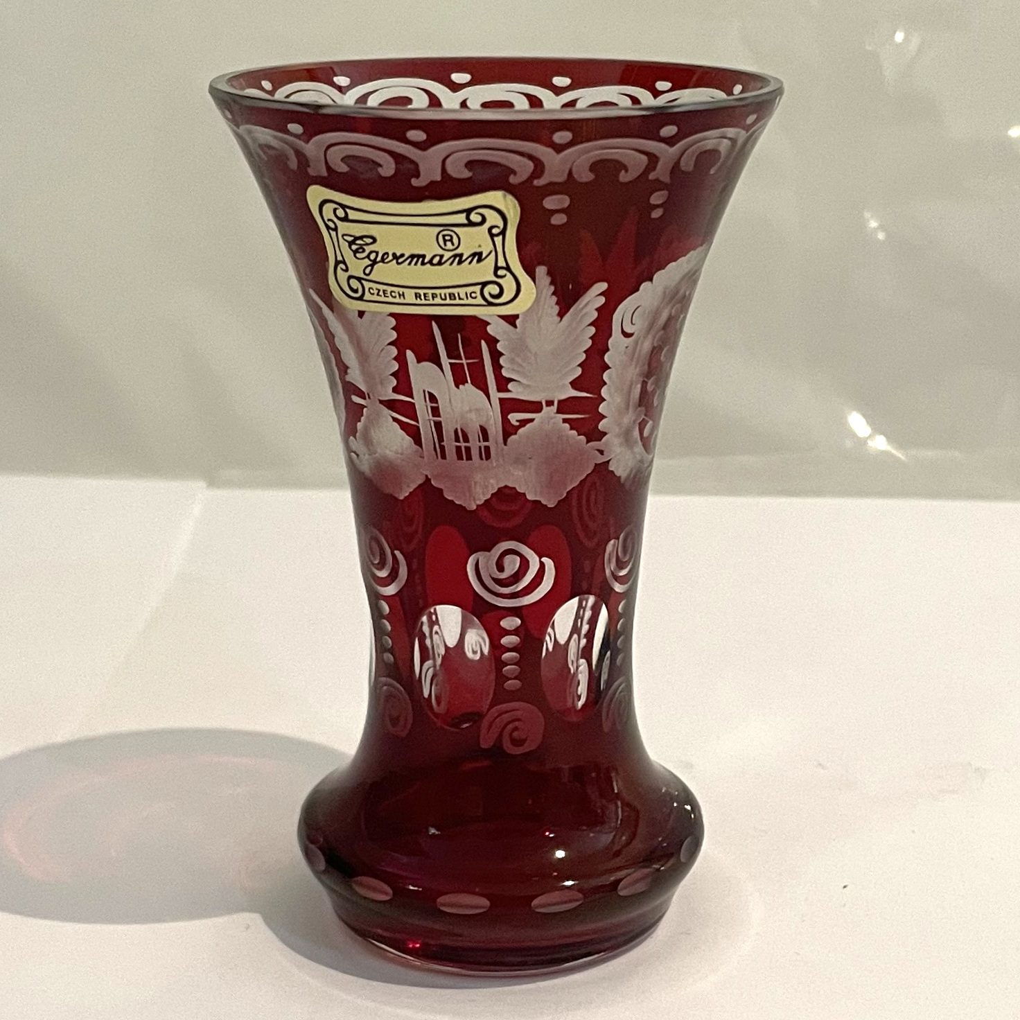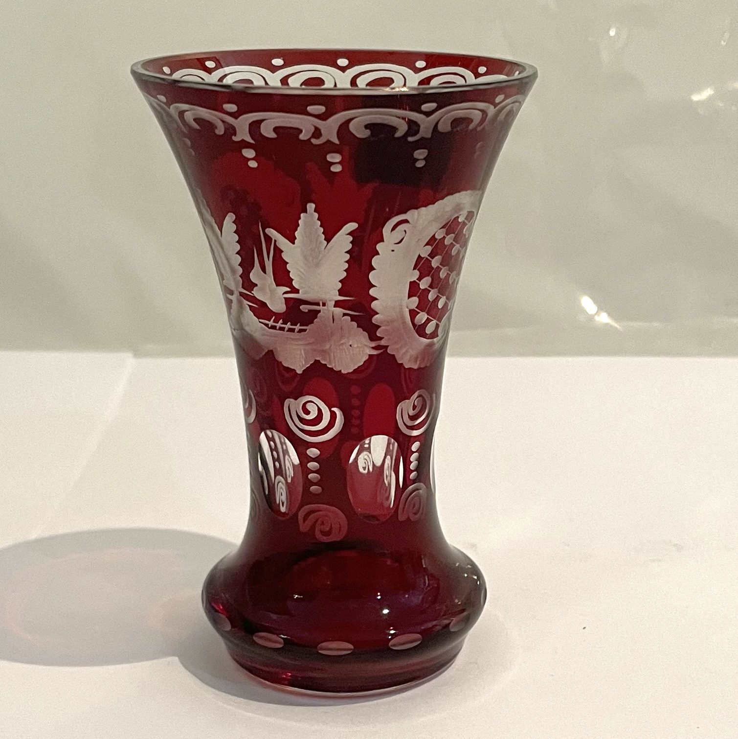 Original Egermann antik Miniatur Glas böhmische Vase geschliffen rubinrot Höhe ca. 9 cm und Durchmesser 4,5 cm