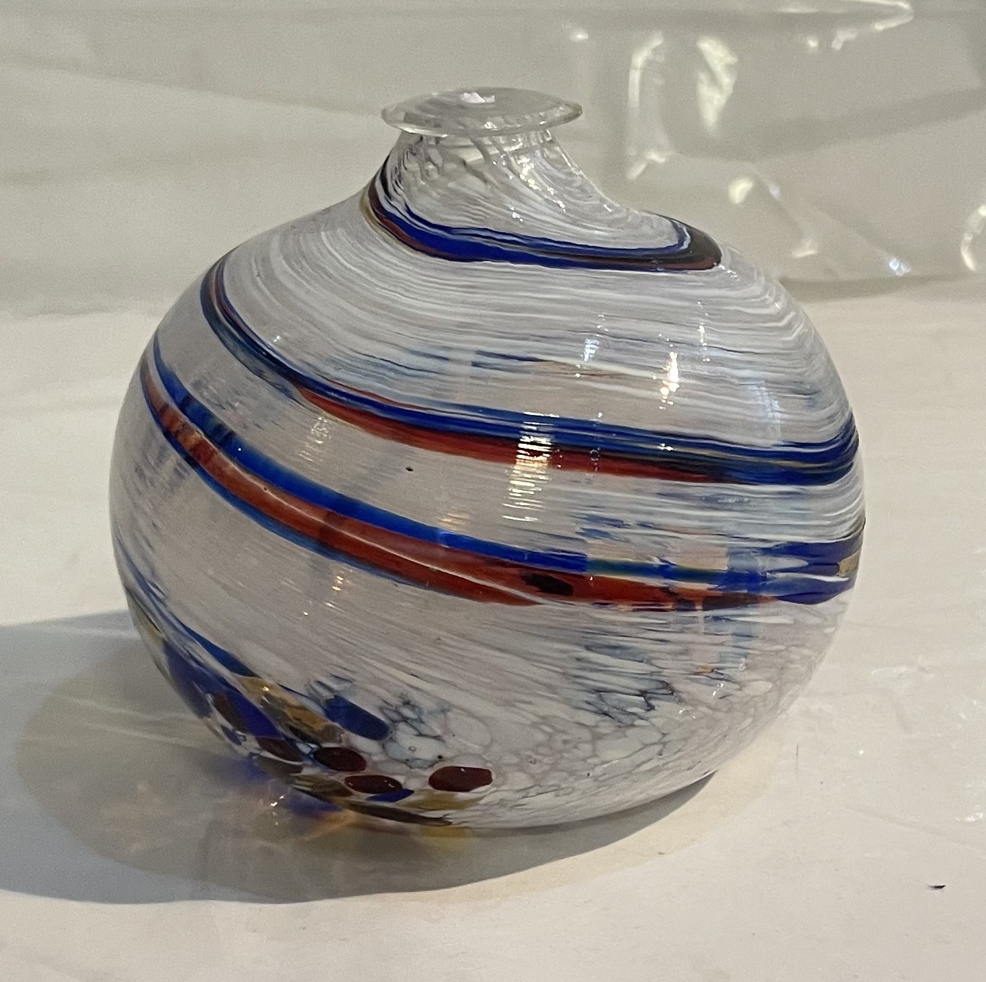 Runde Öllampe blau weiß rot Buntglas Petroleumlampe Ø 9 cm mundgeblasen