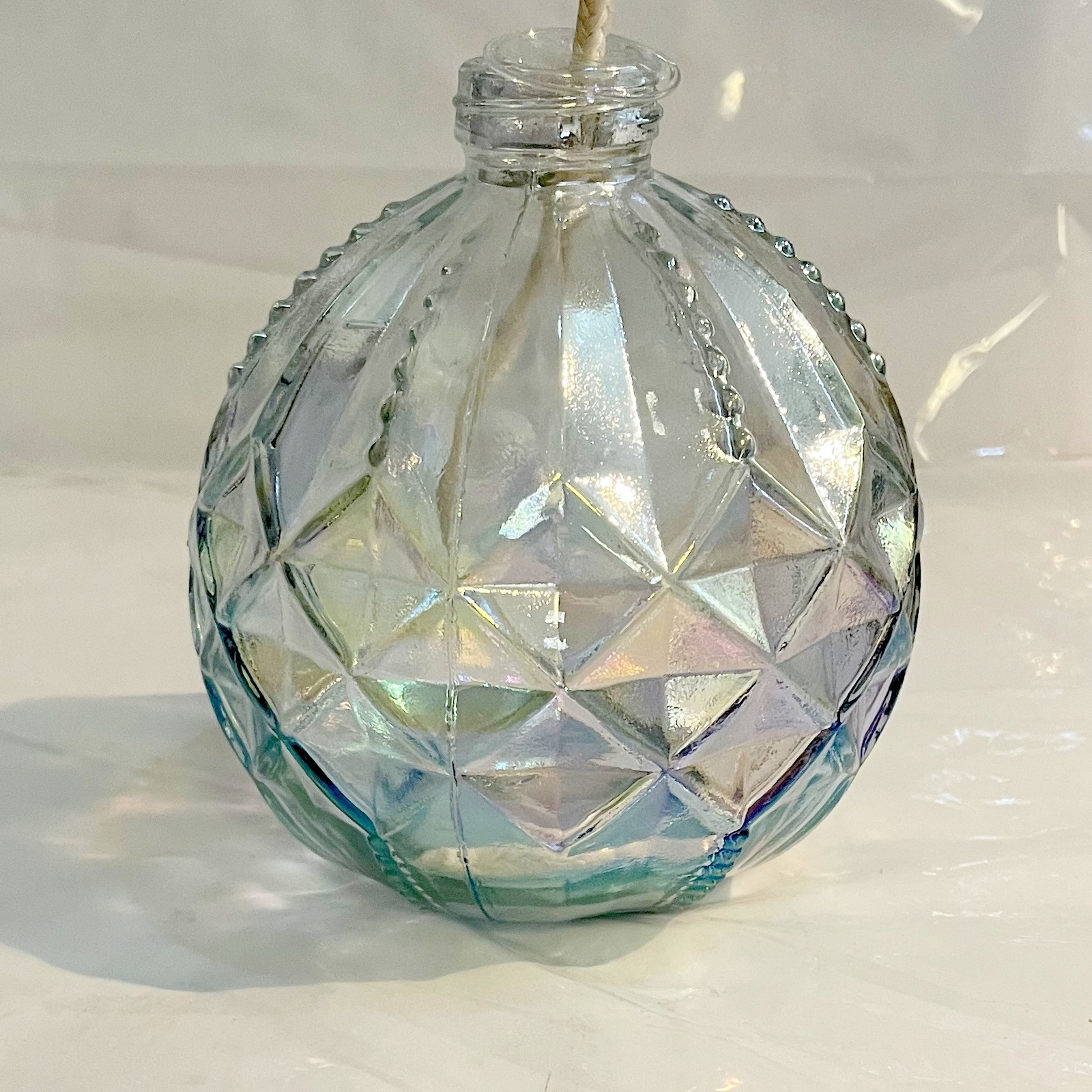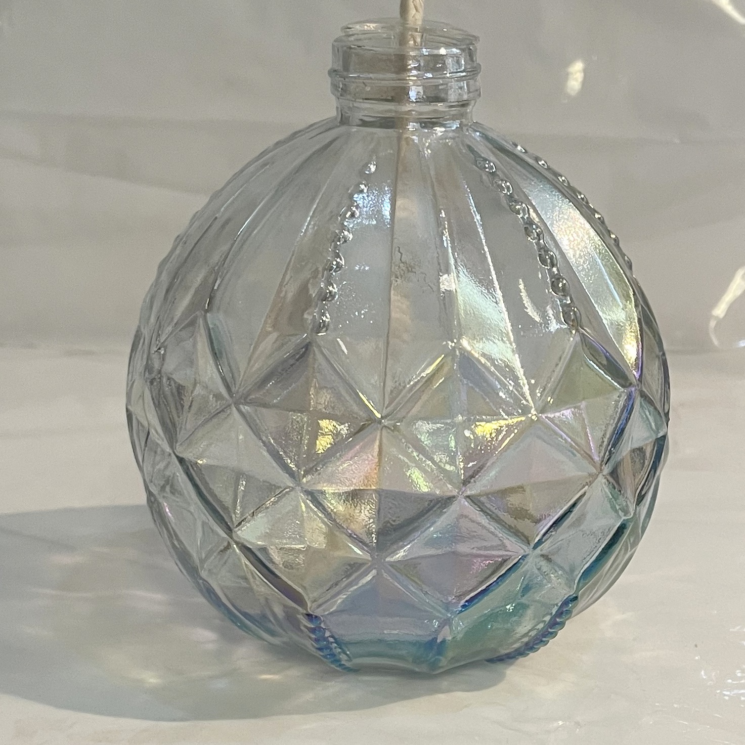 Runde Öllampe Klarglas leicht irisierend Petroleumlampe 10 cm mit Dochtführung und Ø 4 mm Rundocht