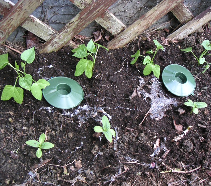 So funktioniert die Falle: In den unteren Teil der Falle legt man einige Körnchen Schneckenkorn. Vorteil: Das Schneckenkorn kommt nicht in den Boden. Der obere Teil ist ein schützendes Dach, das einfach auf den unteren Teil aufgesteckt wird.Vorteil: Das Schneckenkorn wird nicht naß. Somit hat man bei Regen keinerlei Verluste. Dies spart 70 – 80 % (!) Schneckenkorn ! Eine Füllung mit ca. 5 Korn reicht meist mehrere Wochen. Sie können also beruhigt in Urlaub fahren. Gleichzeitig gibt es viel weniger abgefressene Pflanzen. Dies spart zusätzlich Geld und Nerven. Abstand von Falle zu Falle ca 50 cm. Die Schnecken werden vom Lockstoff im Schneckenkorn angelockt und kriechen in die Falle. Ein kurzer Kontakt mit dem Schneckenkorn reicht aus, dass die Schnecke kurz nach Verlassen der Falle ausschleimt und stirbt. Sie sollten diese Fallen unbedingt ausprobieren!