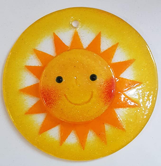 Glas Sonne Ornament zum hängen Durchmesser 10,5 cm buntes Glas gelb orange rot Glasstärke ca. 0,8 cm