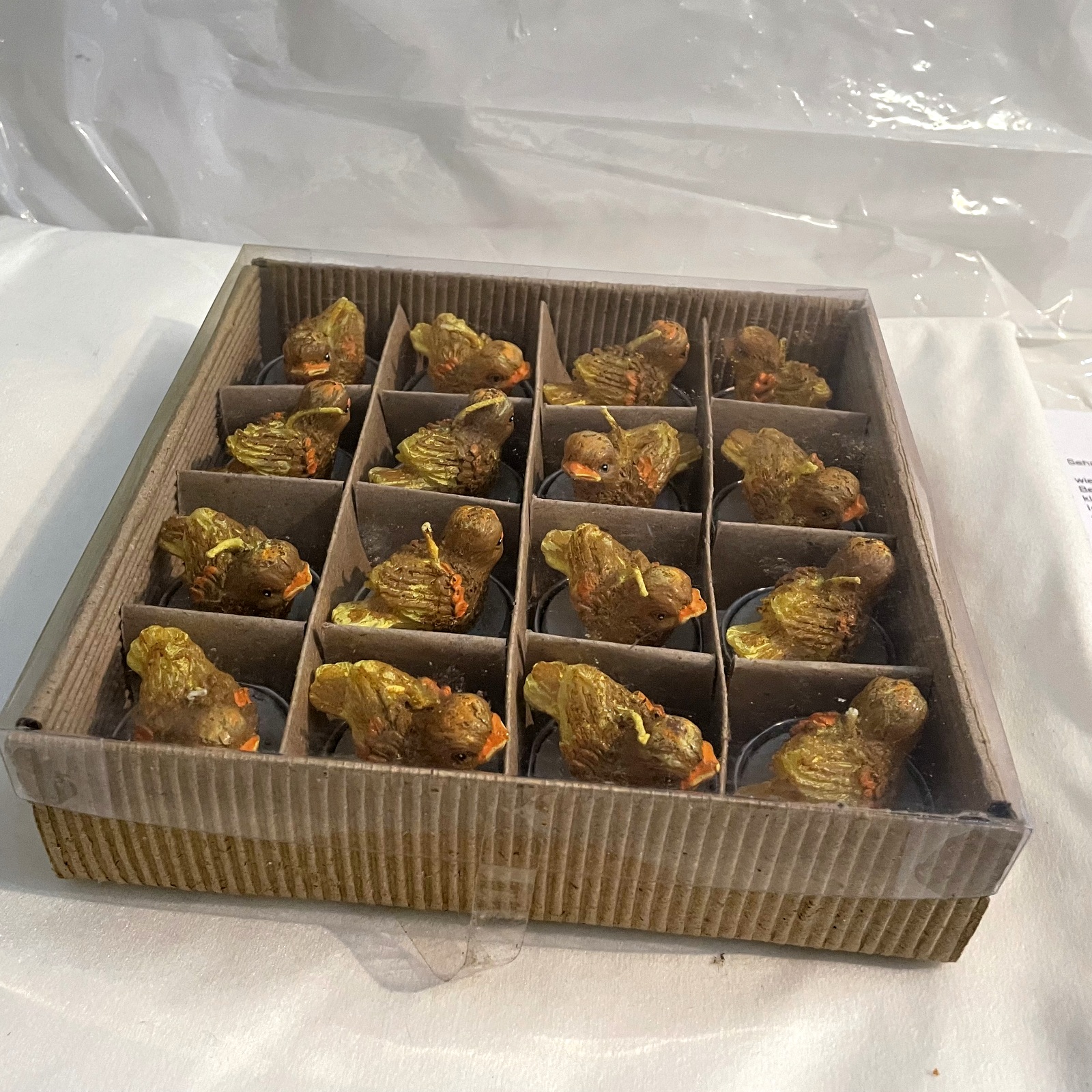Teelichte mit buntem Vogel 1 Set mit 16 Stück II. Wahl