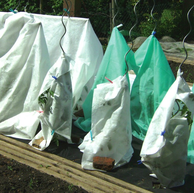 Bild:Tomatenverfrühung mit 30 g Vlies.