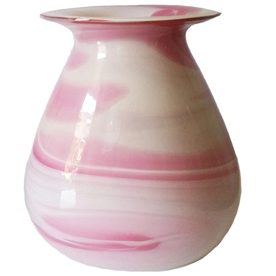 Blumenglasvase mundgeblasen in boxbeutelform in rosa-weiss Höhe ca. 21 cm farblich passende dazu finden sie weitere schöne Artikel aus unserer Serie in unserem Onlineshop