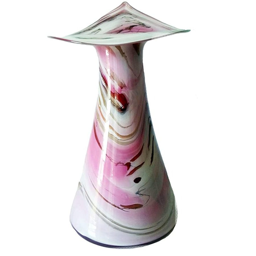 Schlagwörter: Dekoration Geschenk, Tischdekoration, Designervase, handgearbeitete Vase, Unikatvase, Dekoration rosa Glas
