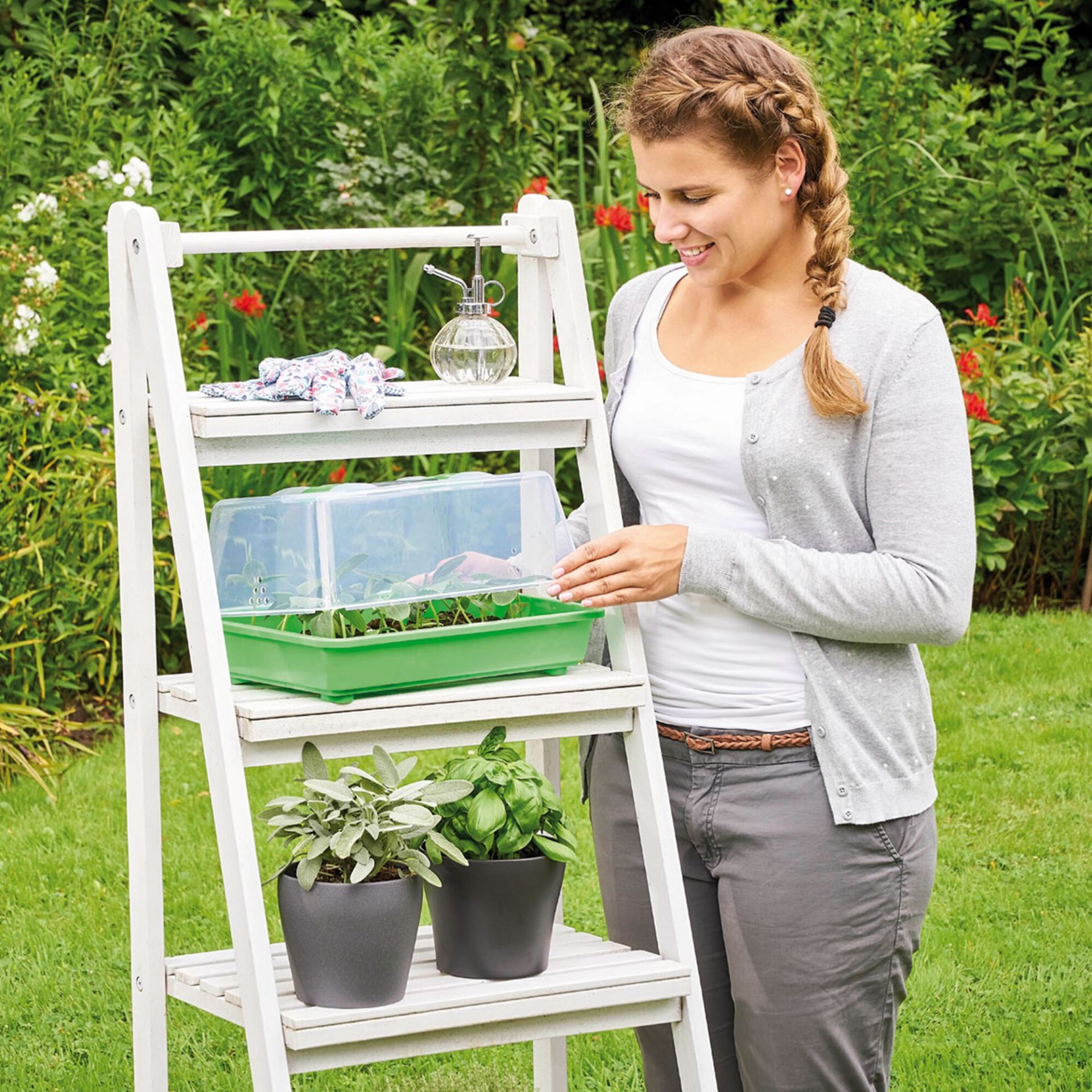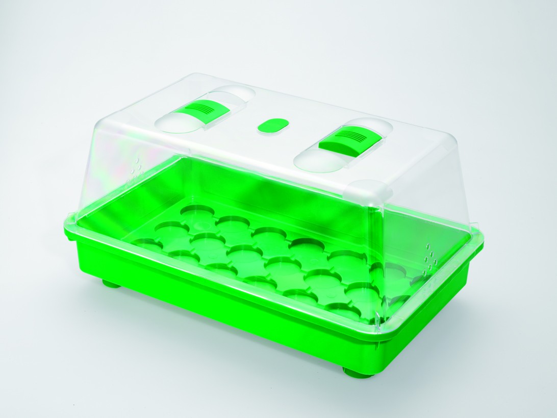 Das Zimmergewächshaus M bestehend aus Schale und Haube ist 38 x 24 x 19 cm groß und eignet sich ideal zur Jungpflanzenanzucht auf der Fensterbank. Die Belüftung lässt sich durch Schieber anpassen.